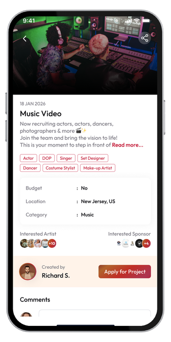 Whether you are a filmmaker, actor, model, musician, dancer, writer, designer, or visual artist - this platform is designed to help you grow through real collaborations and projects, not endless posting.